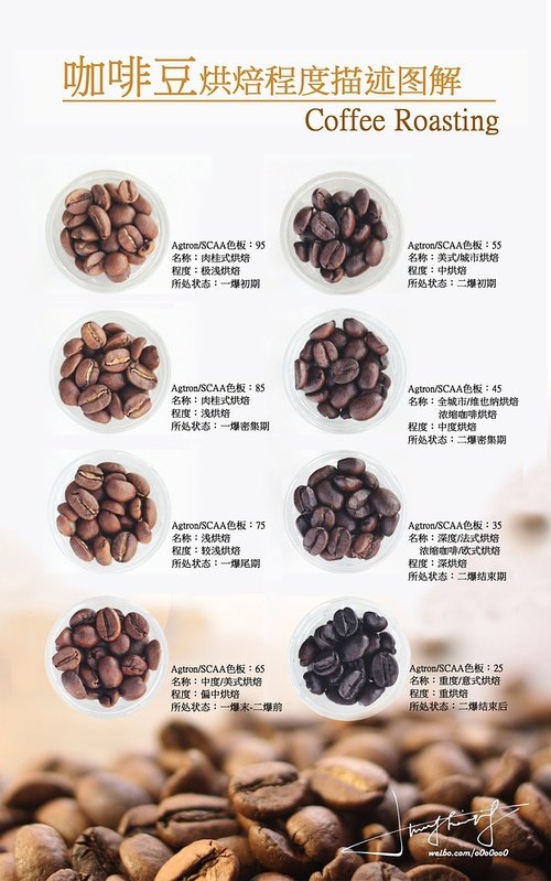 烘焙程度:中度烘焙,又名微中烘焙。褐色,约205~215度。